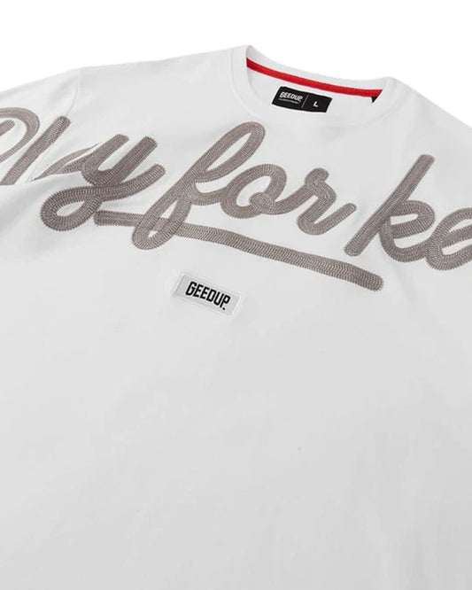 Geedup PFK Script T-Shirt in White and Grey (2023)
