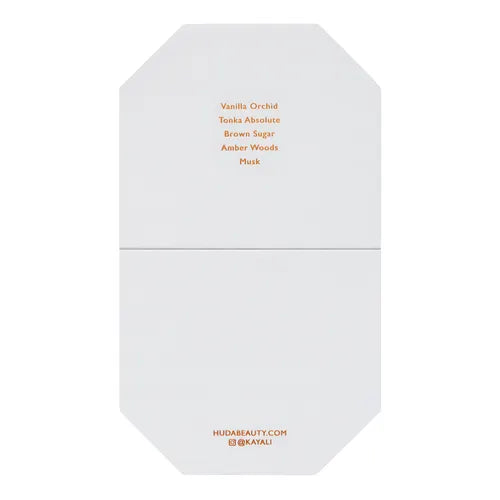 This refined fragrance will captivate your senses with a blend of creamy jasmine and rich Madagascan vanilla orchid. The sweet softness of Brazilian tonka is beautifully balanced by Oriental notes of musk, amber, patchouli and brown sugar in this rich, deep scent. Handcrafted in France, the Kayali Collection is imagined by Huda and Mona Kattan to reflect the limitless possibilities of your desires.